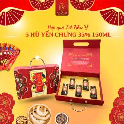 Hộp quà Tết Như Ý 5 hũ Yến Chưng Đông Trùng Hạ Thảo 35% 150ml