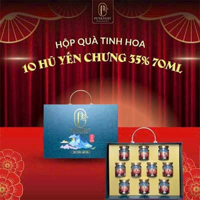 Hộp Quà Tinh Hoa 10 Hũ Yến Chưng Đông Trùng Hạ Thảo 35% 70ml